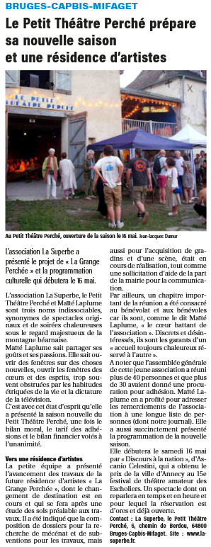 Article de presse Le petit théâtre perché prépare sa nouvelle saison et une résidence d’artistes ParLePetitTheatrePerche 25 mars 2026